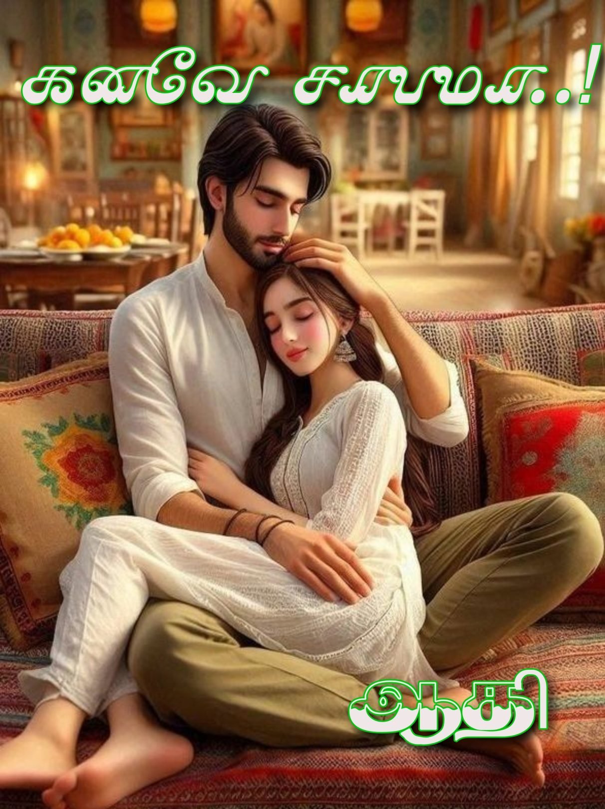 அவளுடனே இருந்தவன் அவள் தூங்காமல் விழித்துக் கொண்டிருப்பதை பார்த்து கவலை உற்றவன் அவளை தூங்கச் சொல்ல அவளோ,